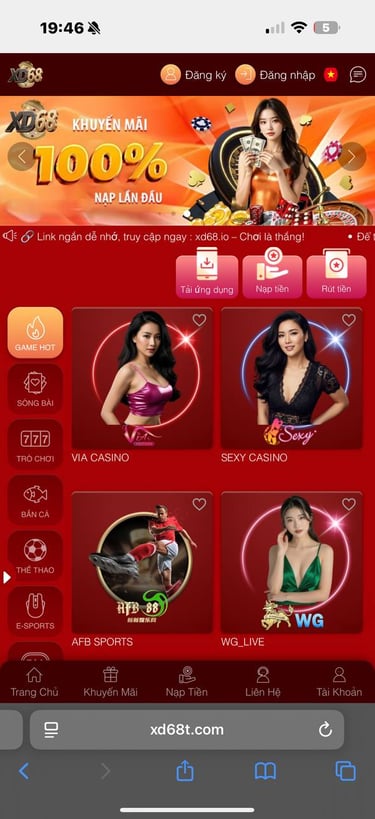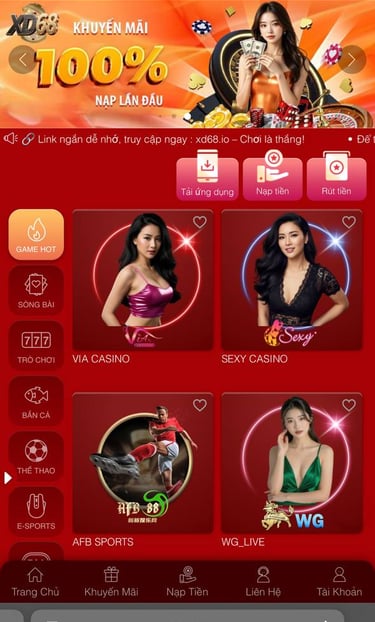 Dù bạn là fan của slot nổ hũ, casino, cá cược thể thao hay bắn cá, phiên bản XD68 Mobile đều đáp ứng đầy đủ: